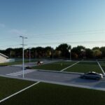 Instalação de postes e iluminarias